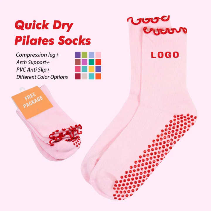Chaussettes de Pilates à séchage rapide antidérapantes pour femmes, chaussettes de yoga et de danse à volants, chaussettes de Pilates personnalisées avec logo, chaussettes de Pilates pour femmes