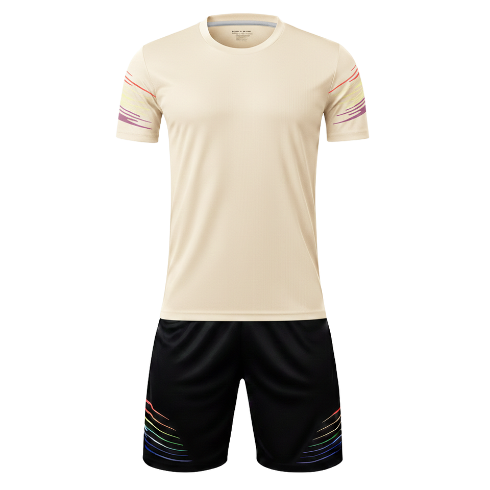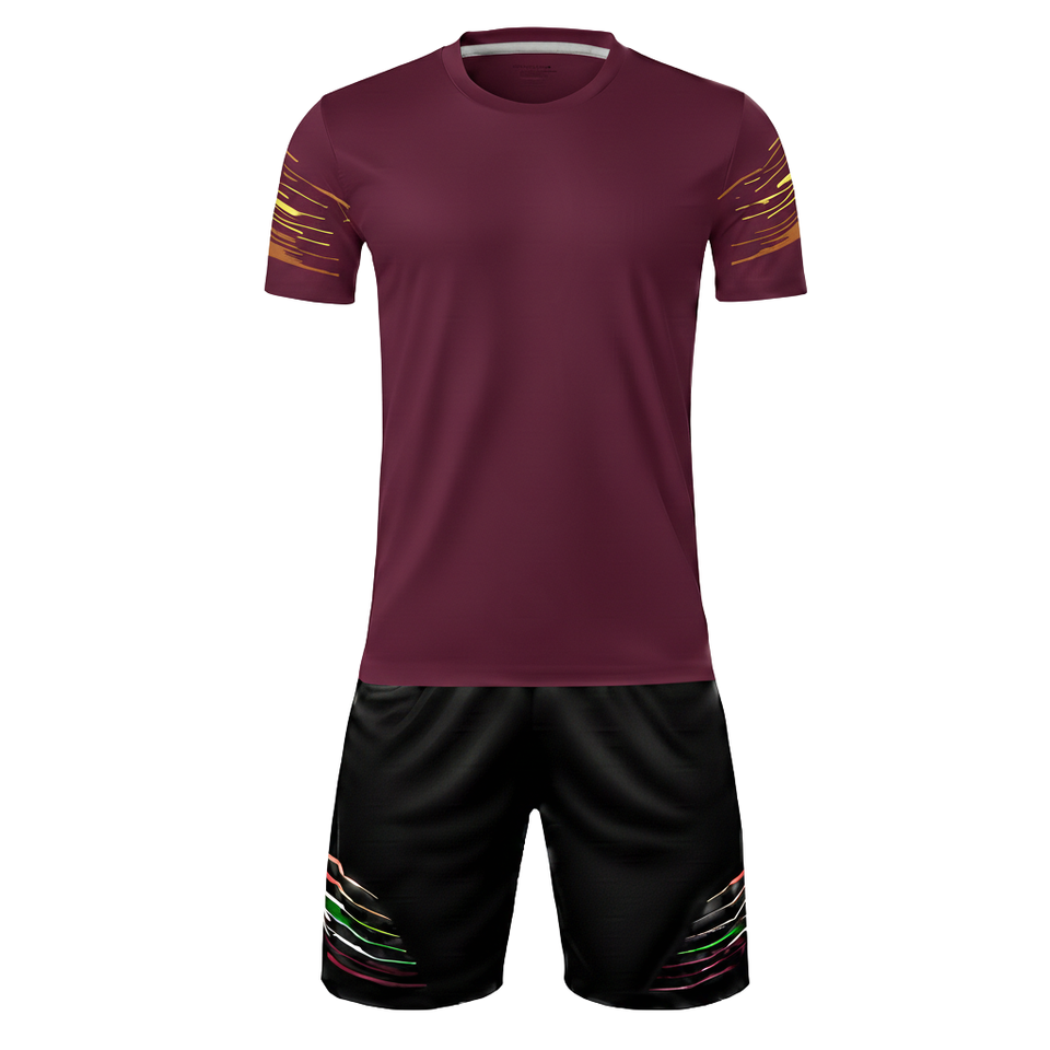 Ensemble de maillot de football à séchage rapide 100% polyester maille, découpe automatisée, imprimé dégradé, col rond, maillot de match et short