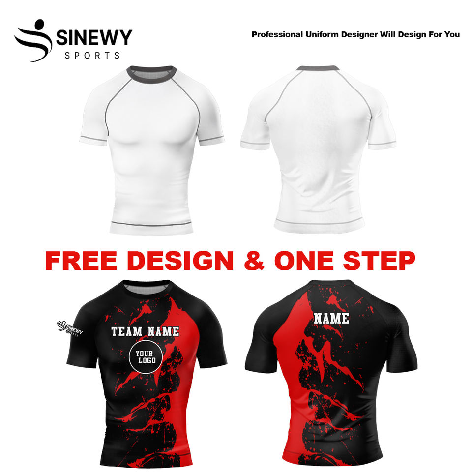 Chemise de compression à manches courtes unisexe respirante, anti-bactérienne, à séchage rapide, UPF50, personnalisée, imprimée par transfert thermique