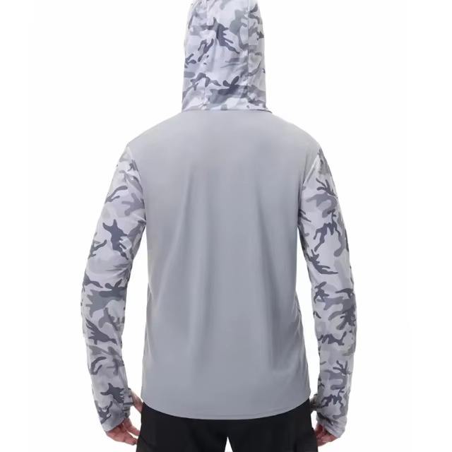 Sweat à capuche de pêche à manches longues imprimé, séchage rapide, imperméable, respirant, coupe-vent, UPF 50+, design personnalisé, motif camouflage, masque intégré, effet délavé