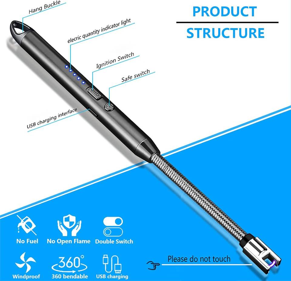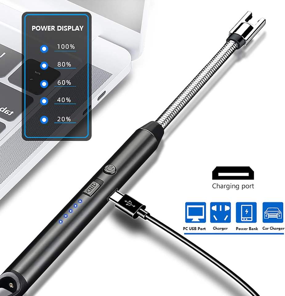 Quick & Easy 360 ° Briquet plasma à col flexible, coupe-vent et sans flamme, avec affichage LED, pour bougies, barbecue, grillades, camping, cuisinière et cheminée
