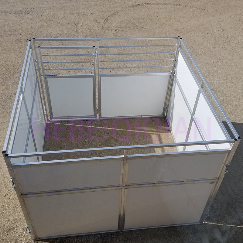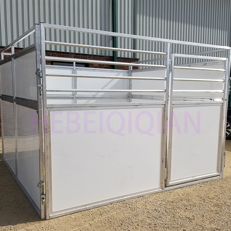 Box de stockage pour chevaux portables en métal galvanisé à chaud à installation rapide, panneaux de box préfabriqués pour extérieur avec porte à charnières personnalisée