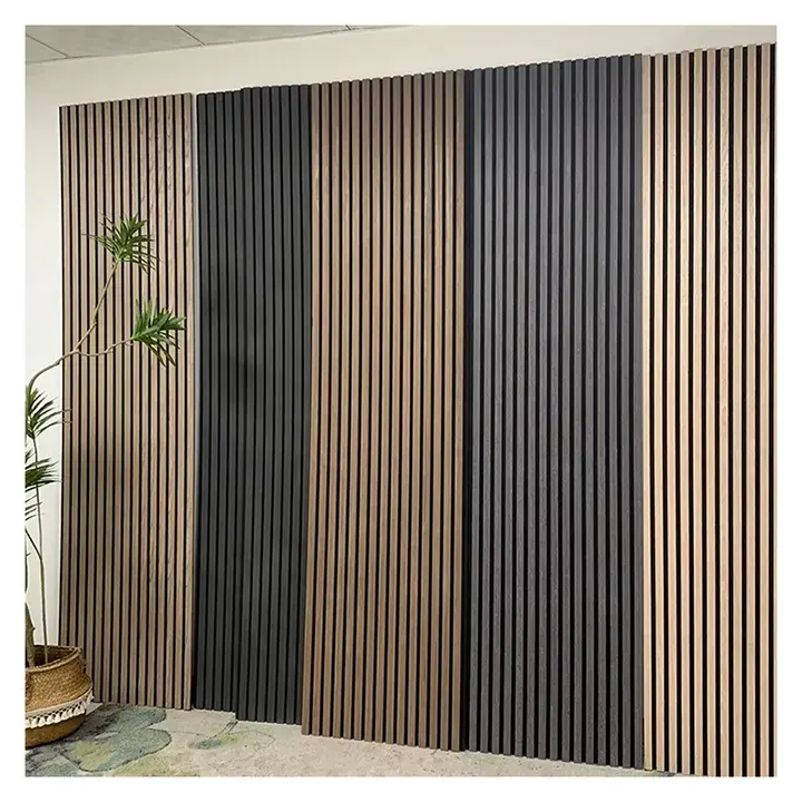 Panneaux muraux à lattes à installation rapide, en bois massif MDF, placage insonorisant noir, 1220x2440mm, panneaux acoustiques pour hall