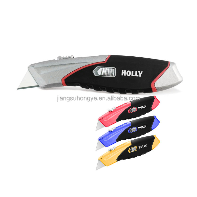 Couteau utilitaire rétractable à 3 lames de secours à ouverture rapide avec poignée confortable en caoutchouc poignée Ergo recharge rapide bureau maison coupe-boîte