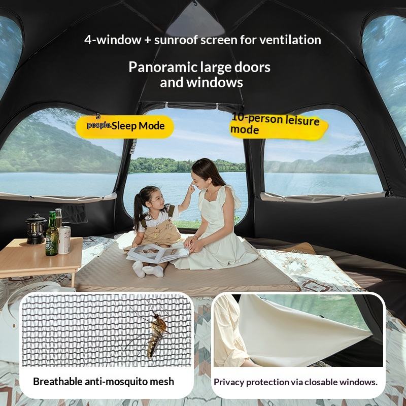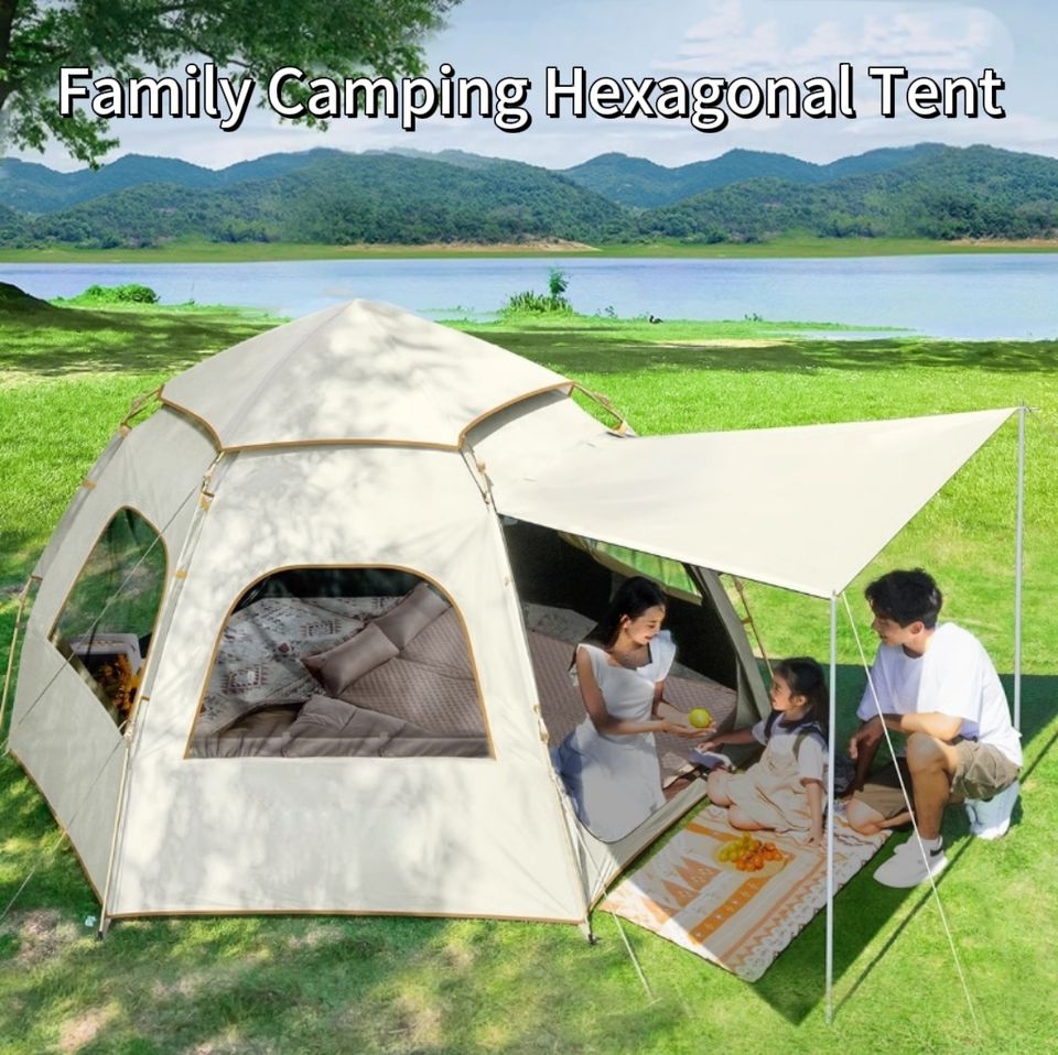 Tente hexagonale à ouverture rapide, installation automatique en 3 secondes, fenêtre en maille pour l'intimité, pour la plage et le camping
