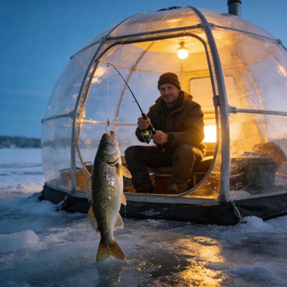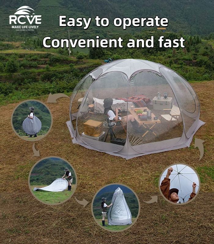 Tente dôme transparente en PVC à ouverture rapide, avec armature droite, résistante à l'eau quatre saisons, une chambre pour la pêche sur glace en extérieur
