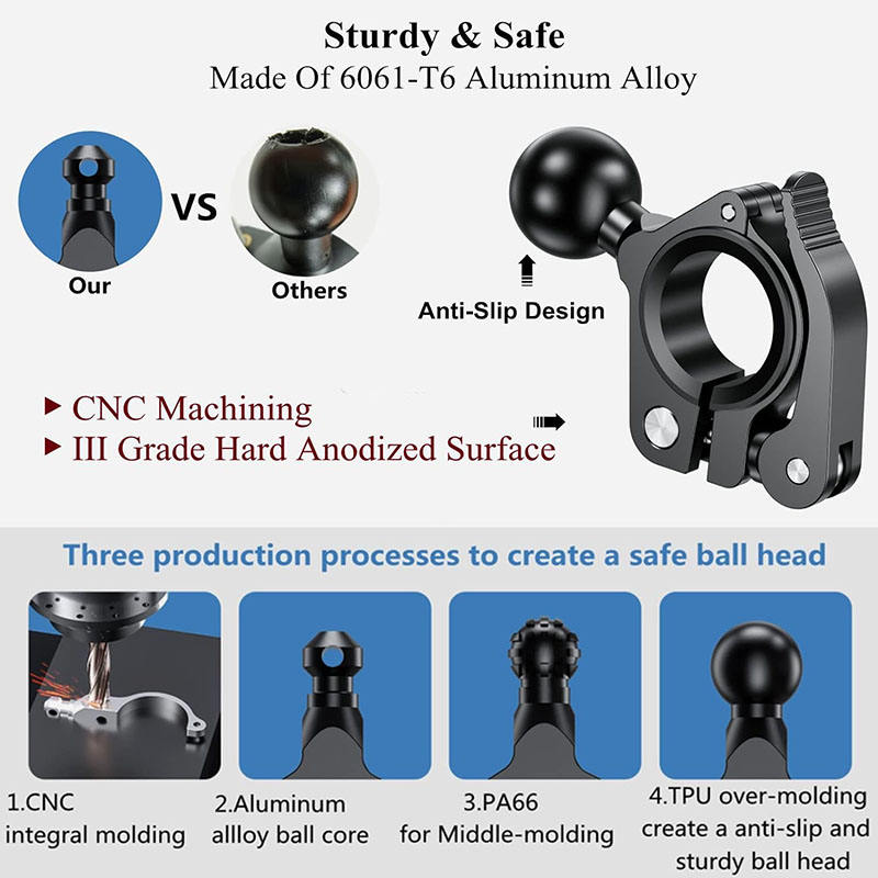 Base de montage de pince de guidon en alliage d'aluminium à dégagement rapide solide 17mm 1 pouce pour supports de Ram support