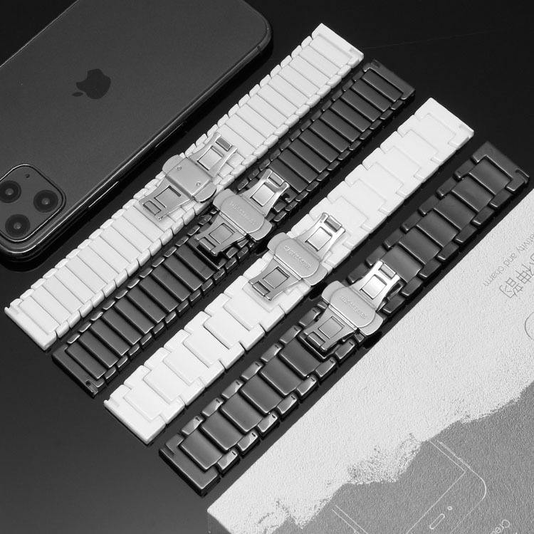 Bracelet de montre en céramique à dégagement rapide pour samsung galaxy watch3 active1 2 3 Bracelet à fermoir de déploiement à boucle papillon