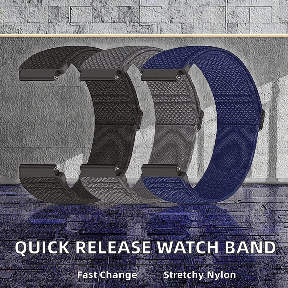 Bracelet de montre en nylon élastique à dégagement rapide 18-24 mm unisexe pour /Garmin/Fossil/Amazfit//COROS/ 3 pièces