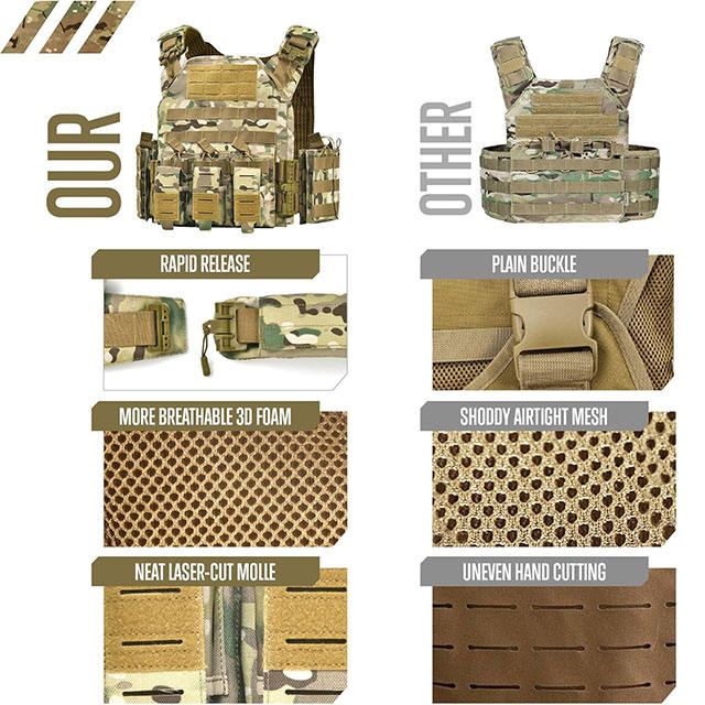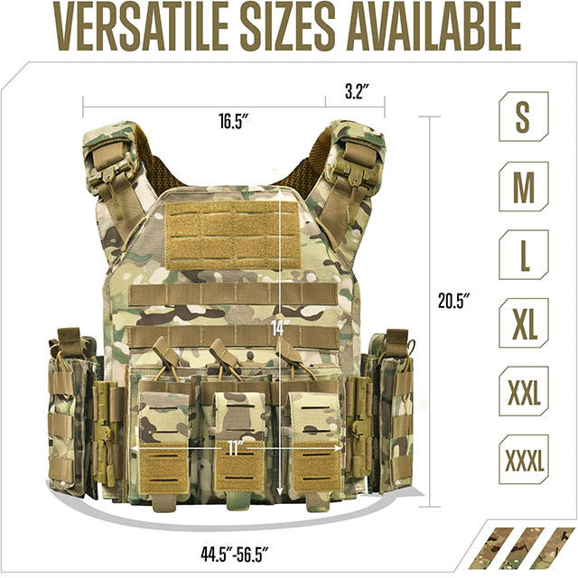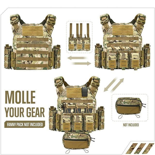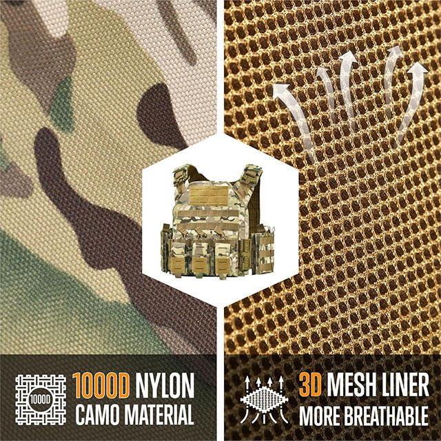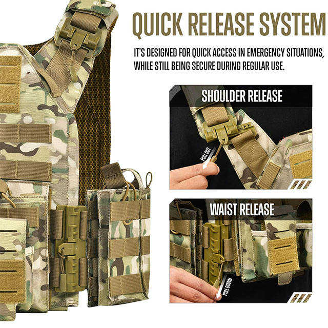 Gilet lesté tactique à dégagement rapide avec cadre interne, camouflage, pour hommes, doublure en polyester imperméable 1000D, bretelles arquées