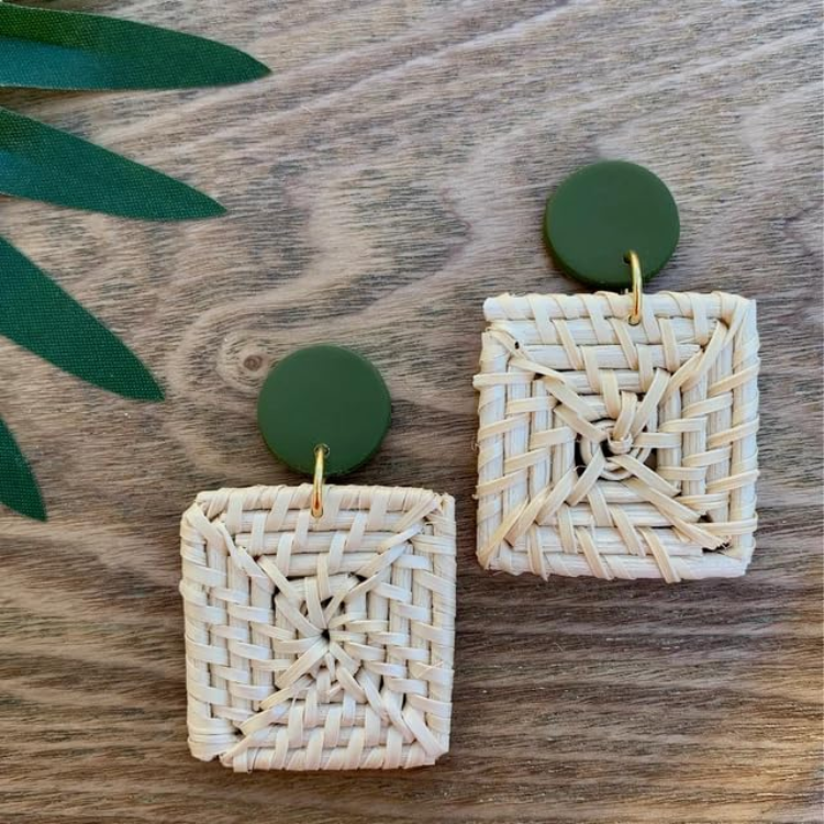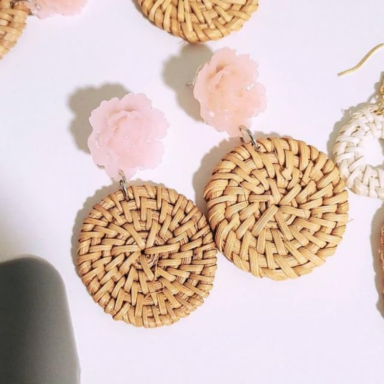 Livraison rapide boucle d'oreille en rotin rond naturel blanc et brun clair rotin tressé bijoux personnalisés bijoux à bricoler soi-même boucles d'oreilles