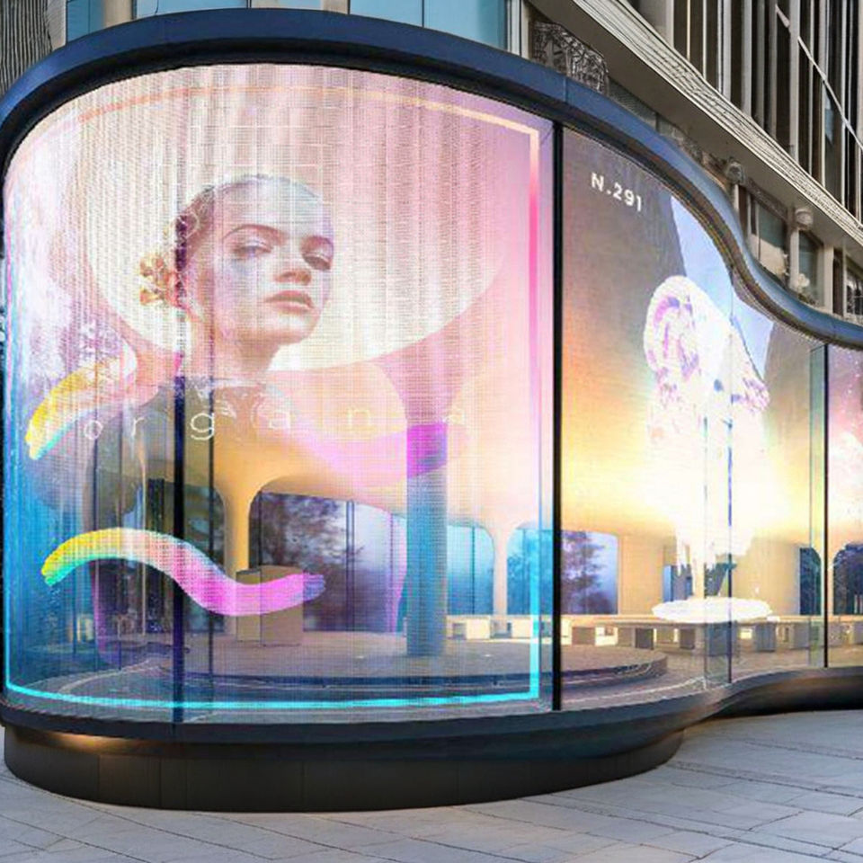 Temps de rotation rapide P8 Écran LED en cristal très transparent Vues dégagées, excellente transmission de la lumière pour les gratte-ciel
