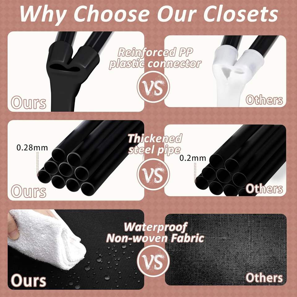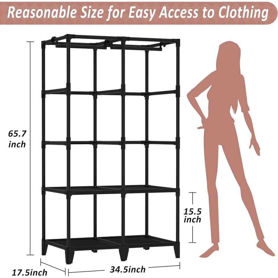 Armoire portable noire à montage rapide et facile avec 2 barres de suspension, 4 étagères de rangement et 8 poches latérales