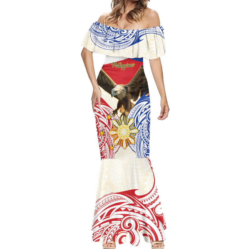 Robe longue sexy asymétrique personnalisable pour la Journée de l'Indépendance des Philippines, nouvelle robe moulante sexy avec motif Aigle des Philippines, vente en gros