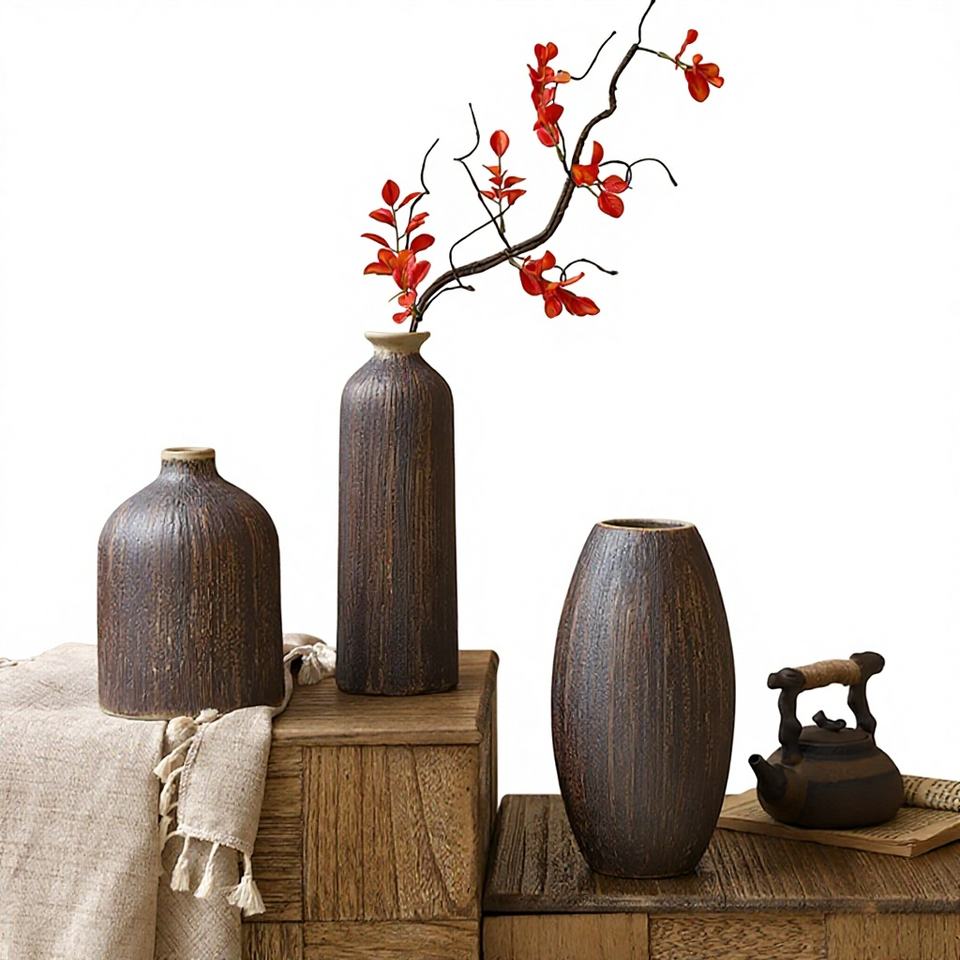 Vase en céramique rétro en terre cuite Quiet Beauty, pour fleurs séchées, décoration de salon, style zen, récipient à fleurs créatif