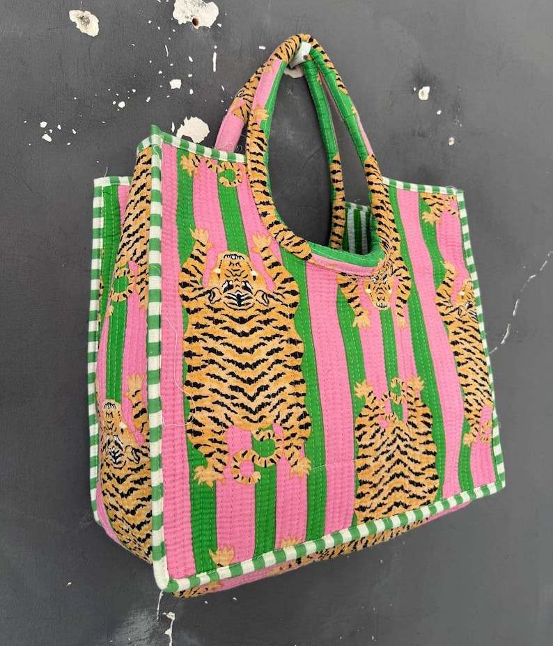 Sac fourre-tout matelassé en coton imprimé au bloc, fonctionnel pour le bureau, le marché, les sorties décontractées et les voyages, sac à bandoulière