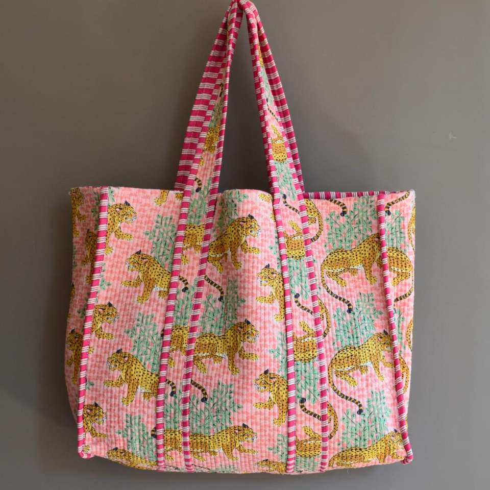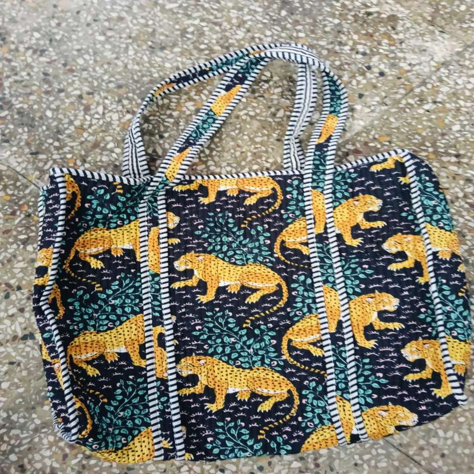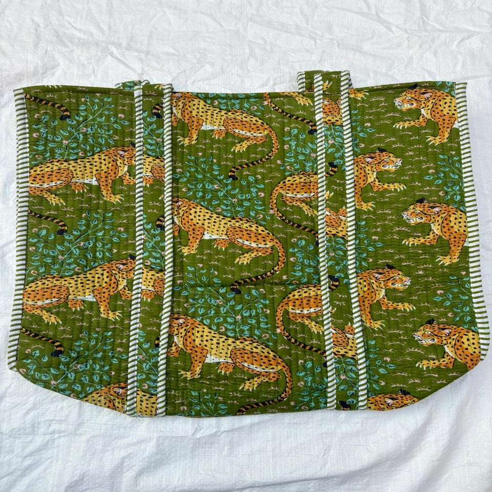 Sac fourre-tout matelassé en coton à motif géométrique avec poignée à cordon et fermeture éclair - Sac de plage, sac de mariage, sac à vin et sac de voyage