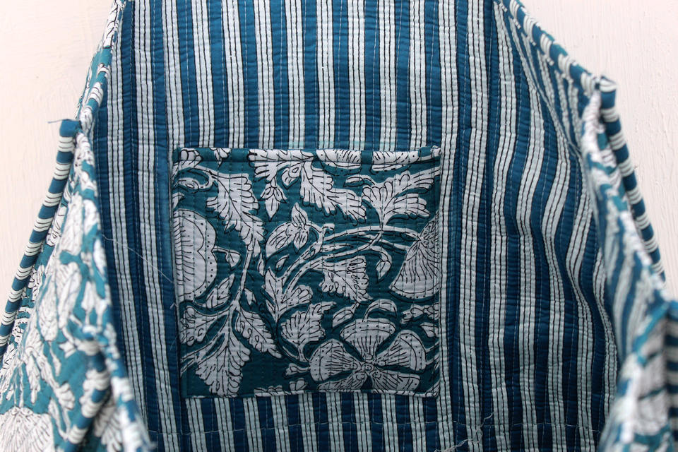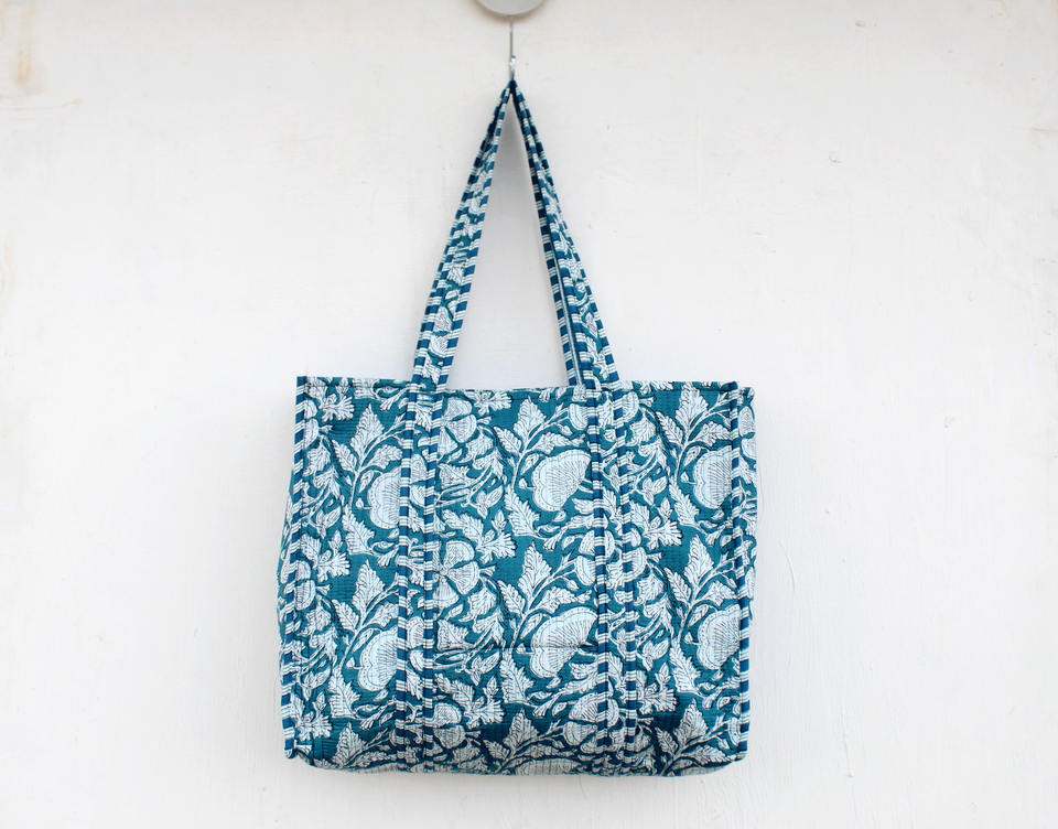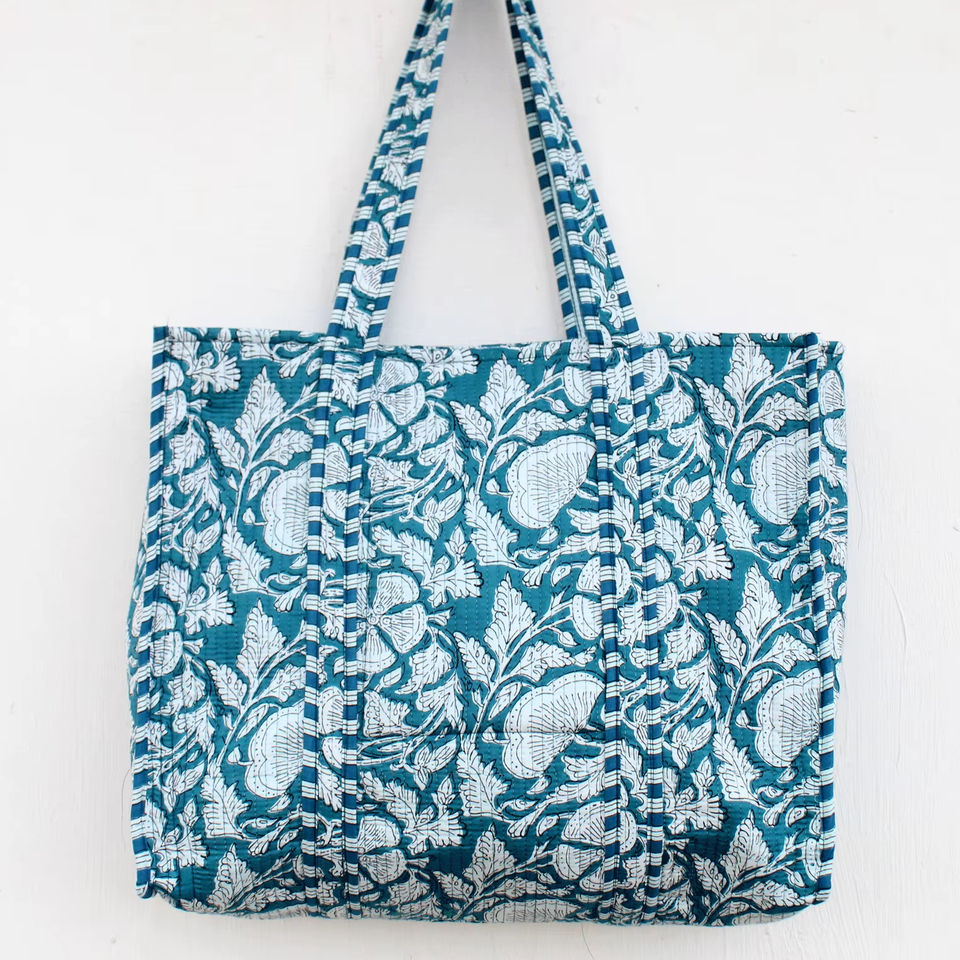 Grand sac fourre-tout réversible en coton matelassé imprimé à la main, écologique, pour les courses, sac de courses, fait main, artiste, bohème