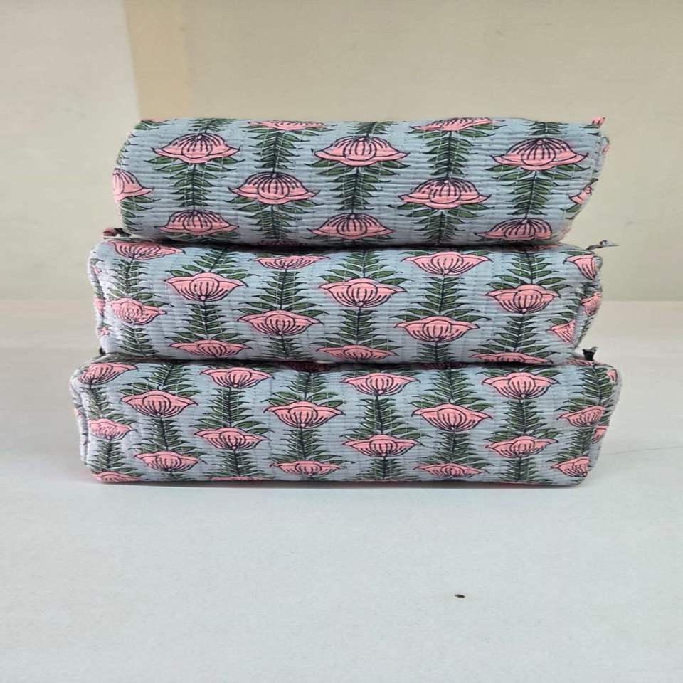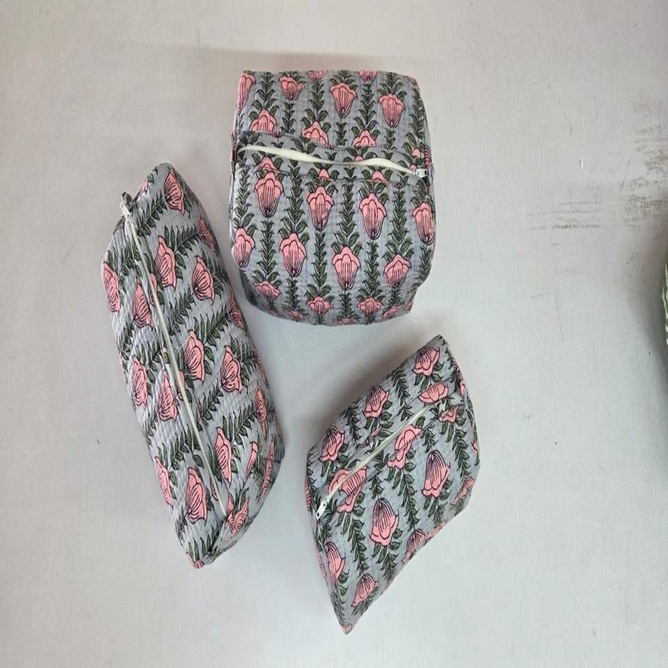 Quilted Cotton Travel & Daily Use Drawstring Toiletry Bag Set of 3 Makeup Bag WashBag