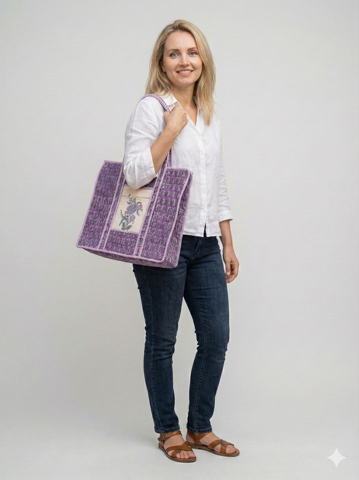 Sac fourre-tout de luxe grand format matelassé et durable, fait main, motif floral, imprimé en bloc, personnalisé, pour voyage, marché, shopping, cadeau pour elle