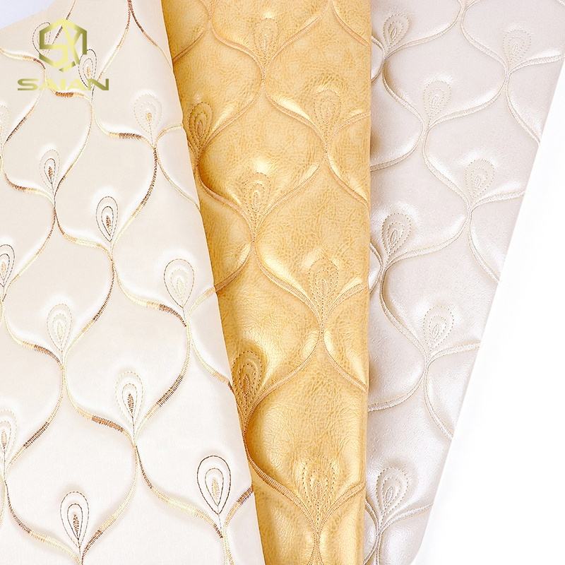 Revêtement en cuir synthétique 3D PU matelassé et brodé avec éponge pour panneaux de porte et panneaux muraux intérieurs de voiture