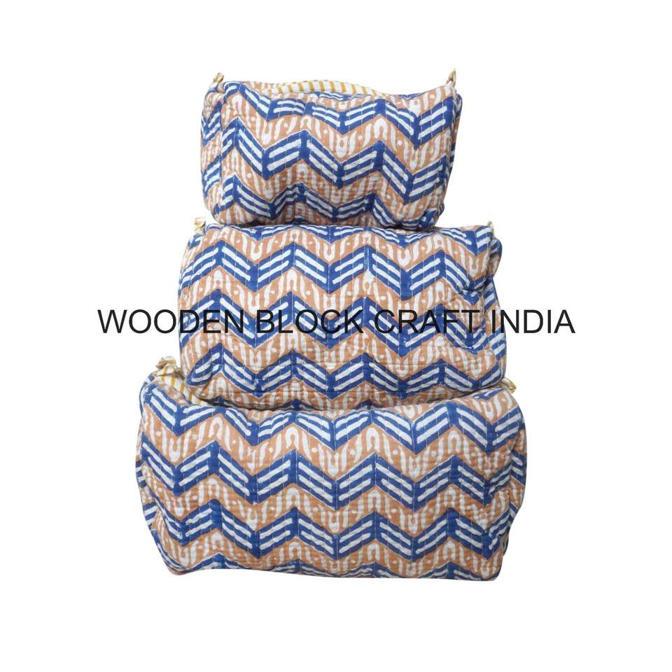 Petite trousse de maquillage écologique en tissu indien imprimé à la main, style bohème, avec fermeture éclair, pour trousse de toilette, 3 pièces, organiseur de cosmétiques