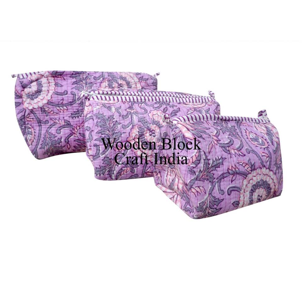 Petite trousse de maquillage écologique en tissu indien imprimé à la main, style bohème, avec fermeture éclair, pour trousse de toilette, 3 pièces, organiseur de cosmétiques