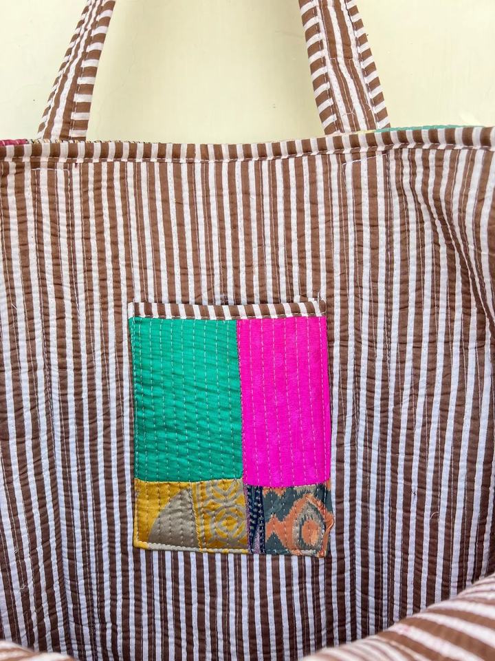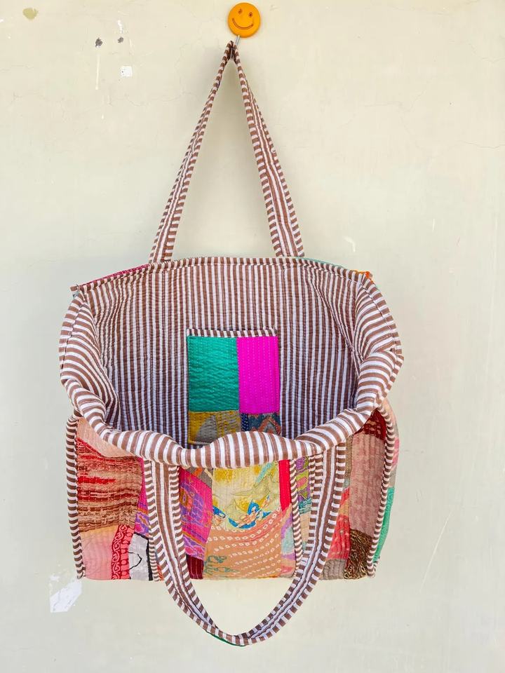 Matelassé Patchwork Coton Imprimé À La Main Floral Sac Fourre-Tout Écologique Durable avec Deux Bretelles Broderie Décoration