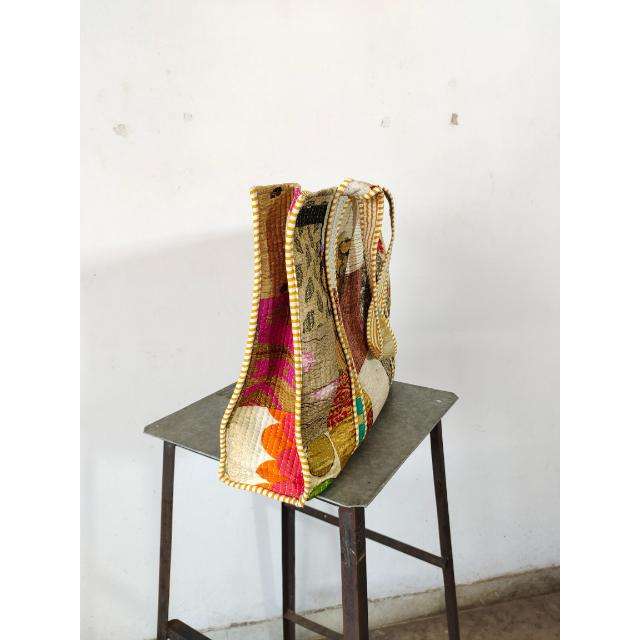 Sac fourre-tout en soie Patchwork matelassé fait à la main grand sac fourre-tout réversible imprimé à la main sac en soie Boho d'artiste d'épicerie robuste écologique