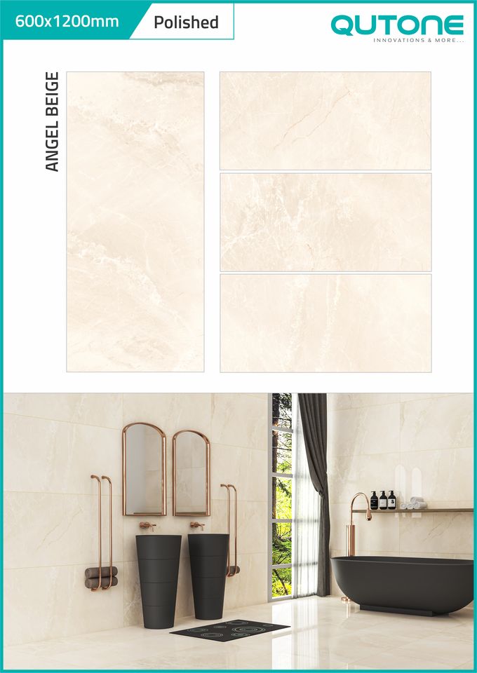 Qutone Angel Beige 600x1200mm Premium Porcelain Ceramic Tiles Elegant Design for Supermarket Dining Villa Mall Bathroom Hall
