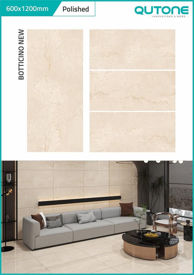 Qutone Elegant Cream Marble Look 600x1200mm Botticino GVT Polished Porcelain Tile Soft Texture for Hall Bathroom Villa Mall