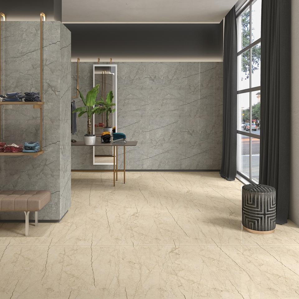 Martin Collection 600x1200mm GVT Polished Porcelain Tile Beige Soft Stone Look Surface for Hall for Bathroom Dining Villa