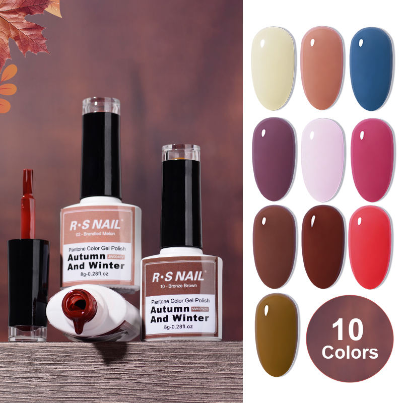 Vernis à ongles gel R S Nail Pantone, 10 couleurs, échantillon gratuit 8g, végan, non toxique, séchage LED, flacon professionnel pour nail art