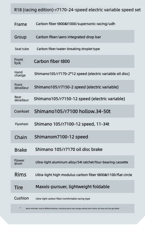 Vélo de route R18 Racing ED en fibre de carbone avec freins à disque, 24 vitesses, roues à rayons en carbone 105 R7170 Hydr, léger