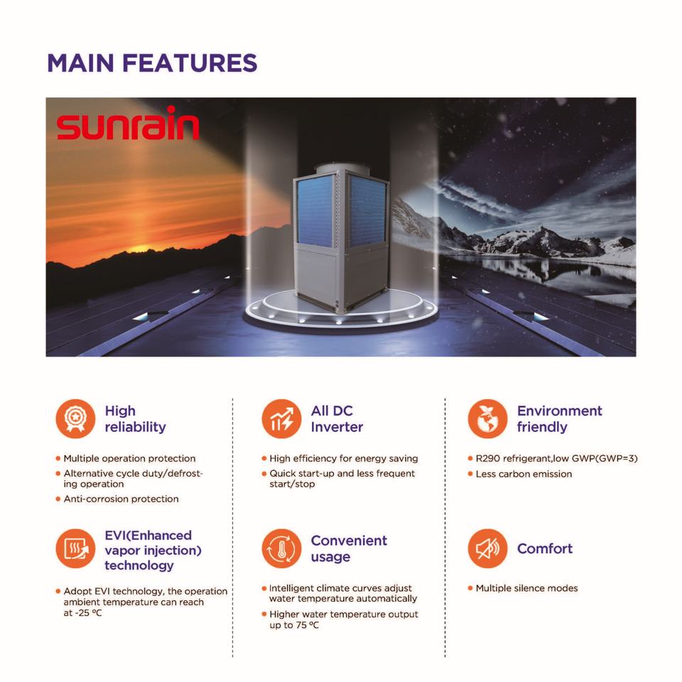 Pompe à chaleur air-eau à haute température R290, EURO BAFA ERP CE CERT, onduleur, chauffage et refroidissement, 50 kW, pour projet commercial