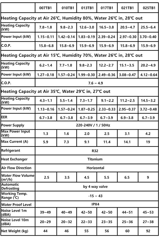 7KW 10KW 13KW 17KW 21KW 25KWHeating capacity