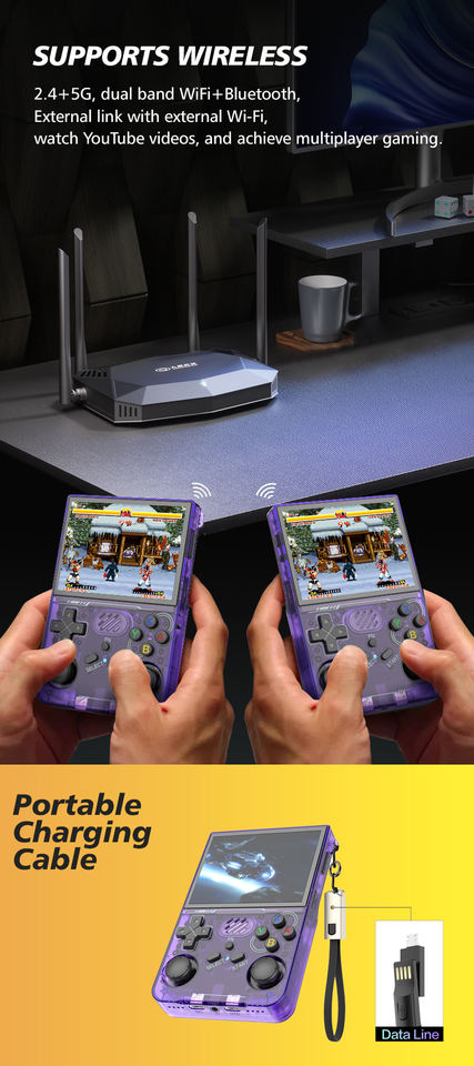R36xx mise à niveau de la console de jeu portable prend en charge plusieurs émulateurs 2.4 + 5G WIFI + BT 640*480 Pixel câble de charge portable 64GB