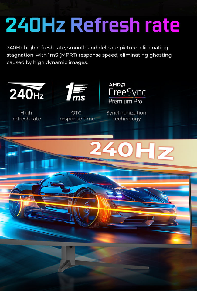 120HZ/180HZ/240HZFréquence de rafraîchissement