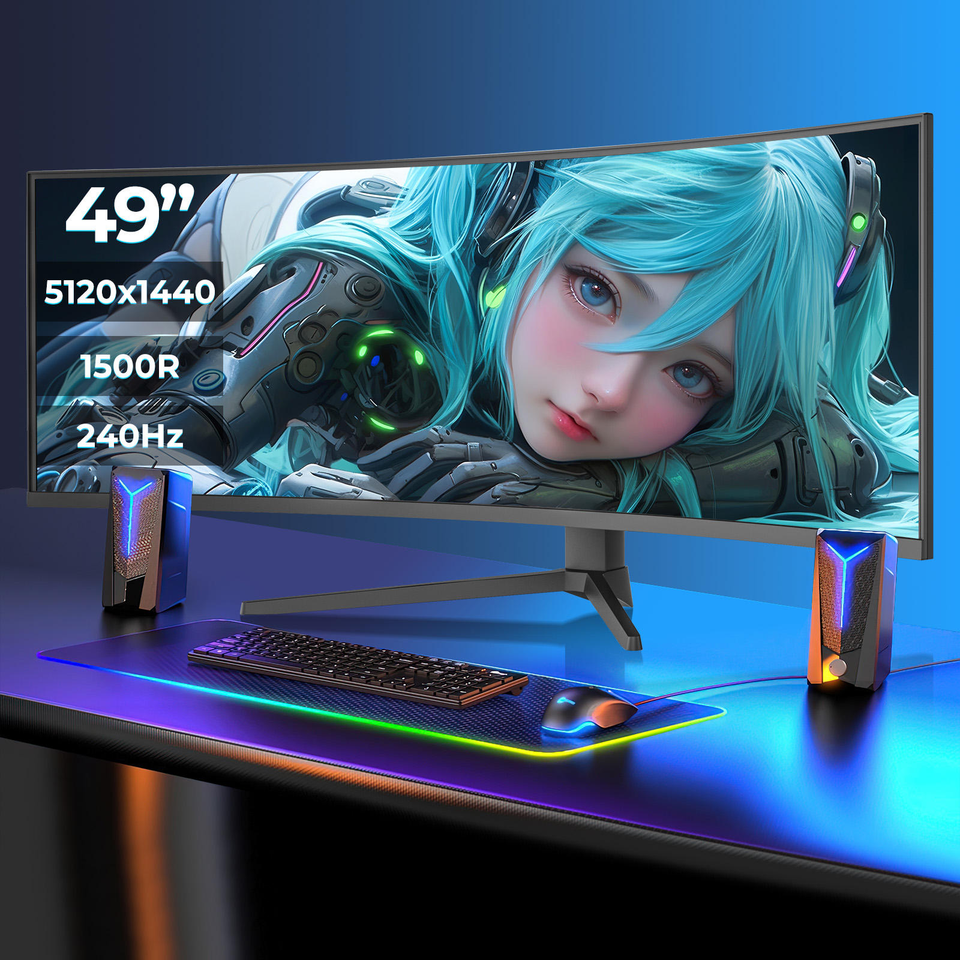 Moniteur de jeu incurvé R3800 de 49 pouces avec écran LED ultra-large 5K Panneau TFT Options de montage mural et de bureau pour PC de jeu