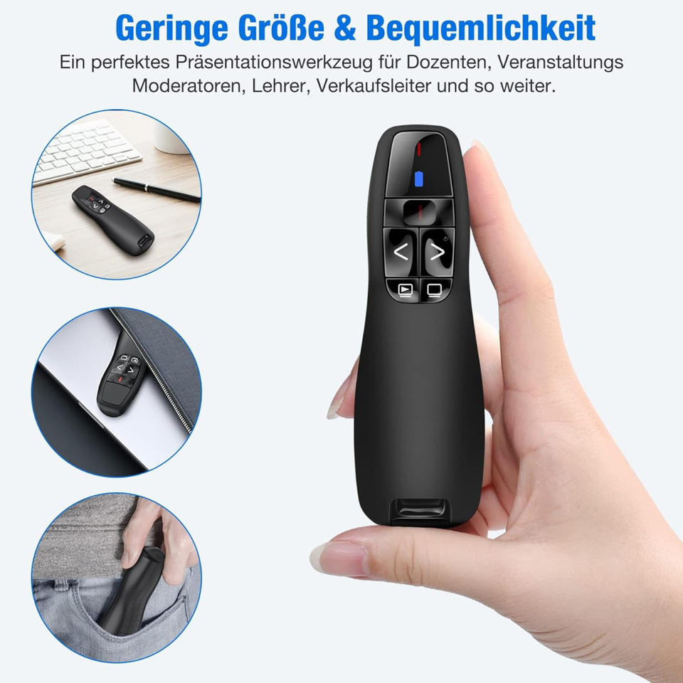 Pointeur laser rouge R400, récepteur USB USB C, recharge par piles AAA, télécommande sans fil 2,4 GHz, portée de 100 m, fonction de présentation