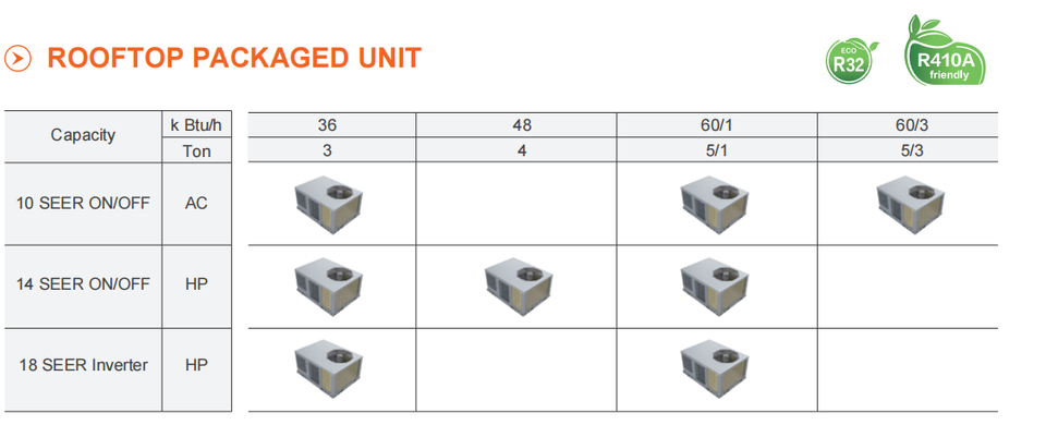 Unité de traitement d'air murale split R454b à décharge supérieure CC 18000-36000 36000-60000 BTU OEM/ODM pour applications commerciales légères