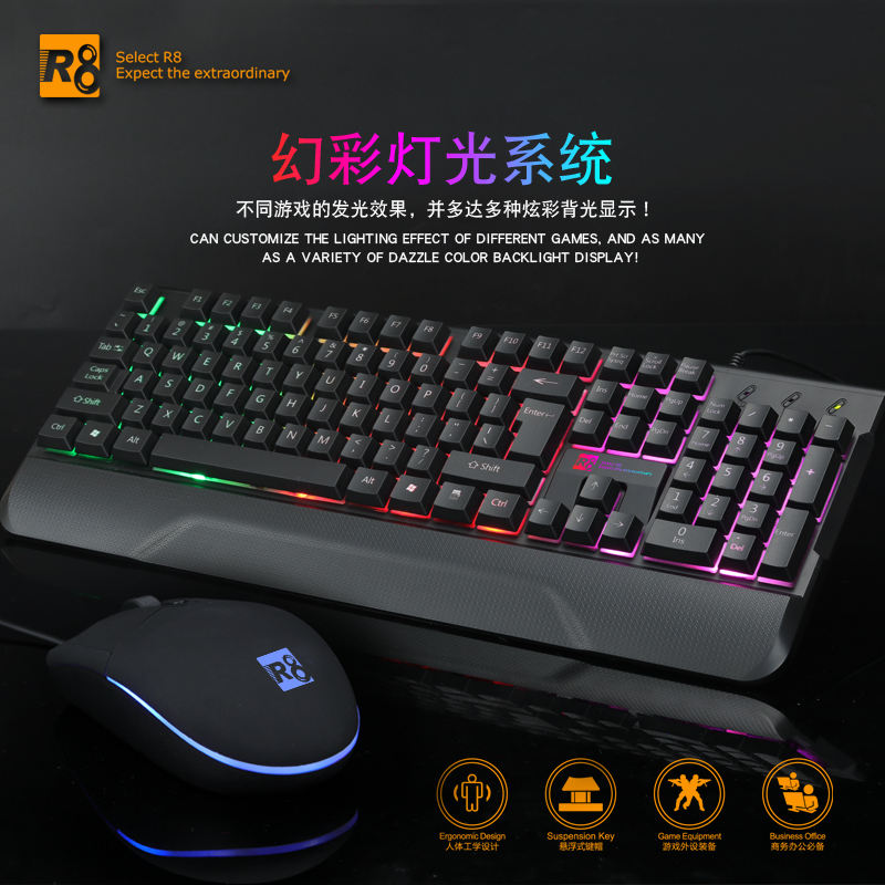 Redragon-ensemble clavier et souris illuminés, pour Gamer, R8