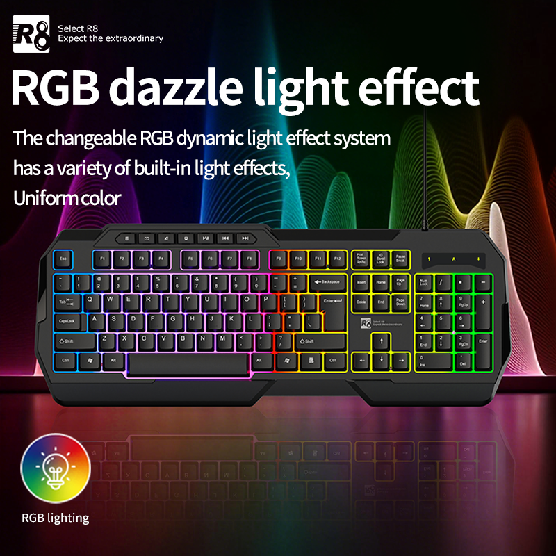Clavier filaire R8 6 en 1, clavier de jeu, souris, casque et kit de souris, combos de clavier filaire pour joueur, ordinateur de bureau