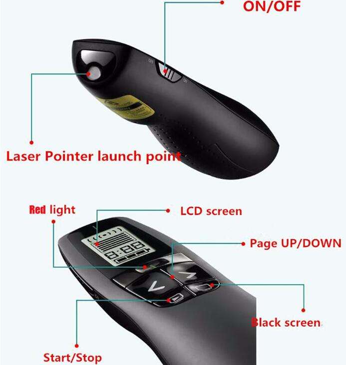 R800 2.4Ghz Mini USB présentateur sans fil PPT télécommande Laser vert LED pointeur d'affichage pour présentation Powerpoint