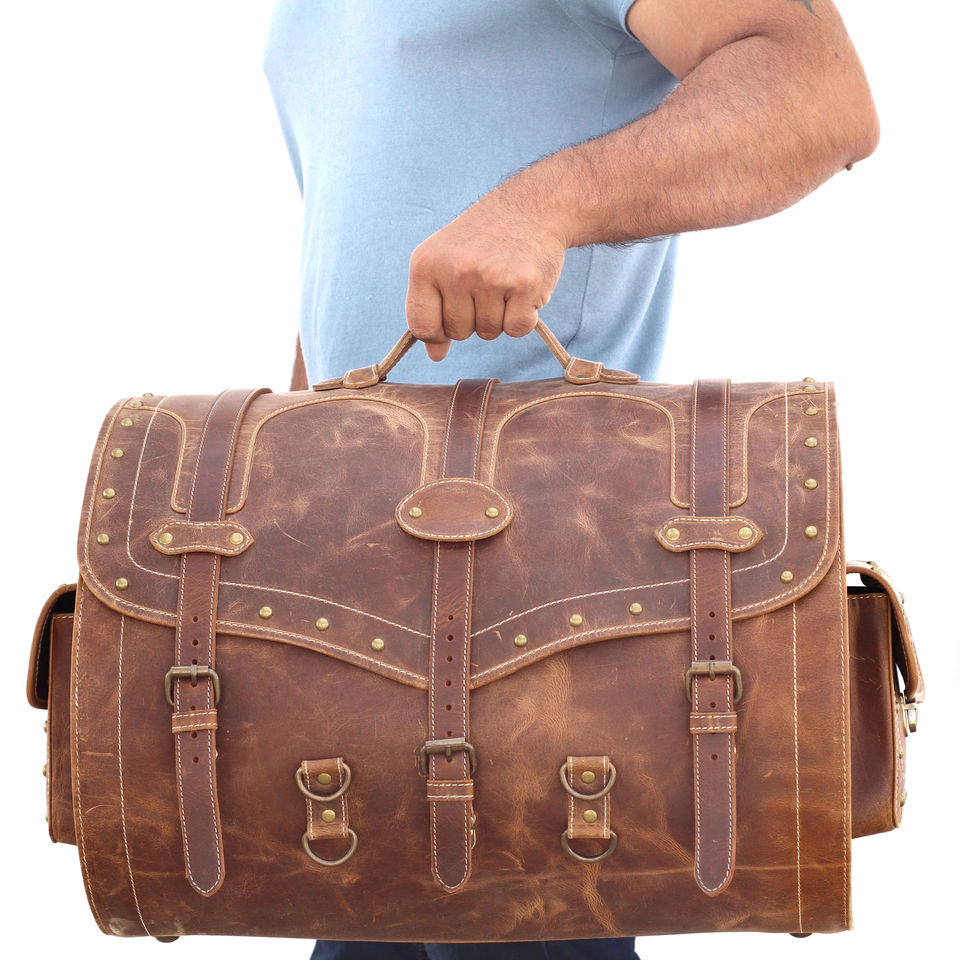RABADA Leather Large Capacity 50L Waterproof Travel Trunk Outdoor Overnight Weekender Bag Durable Bike Bag