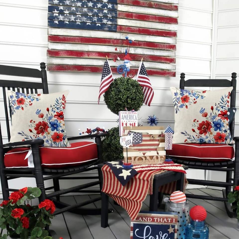 RABUSOFA 18x18 pouces patriotique jeter taie d'oreiller rouge blanc bleu fleurs jour de l'indépendance décoration américaine oreillers décoratifs