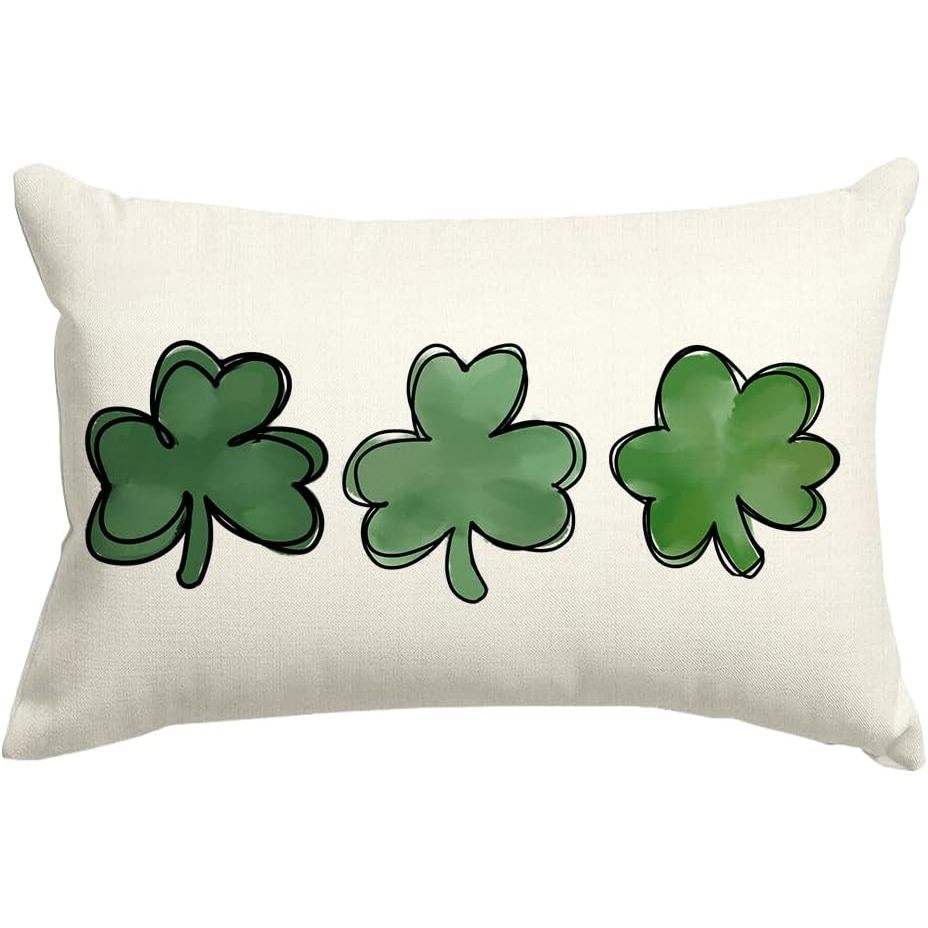 RABUSOFA St. Patrick's Day Coussins décoratifs blancs 12x20 pouces Lucky Clover Coussin Case Green Shamrock Sofa Décoration