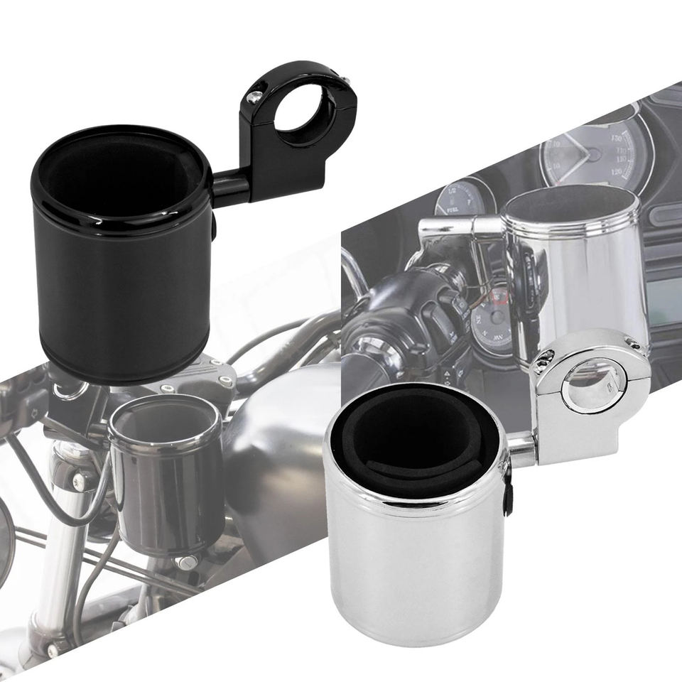 RACEPRO Porte-bouteille universel personnalisé / Porte-boissons pour tous les guidons de moto Noir pour Harley Touring Softail Dyna