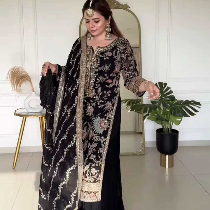 RADHE EXPORTS Lehenga moderne à sequins, taille 44, en filet papillon, séchage rapide, avec broderie Chinon, pour soirée/usage quotidien