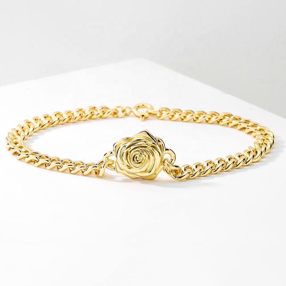Keyword.:Cuban Link Bracelet with Flower Silver H